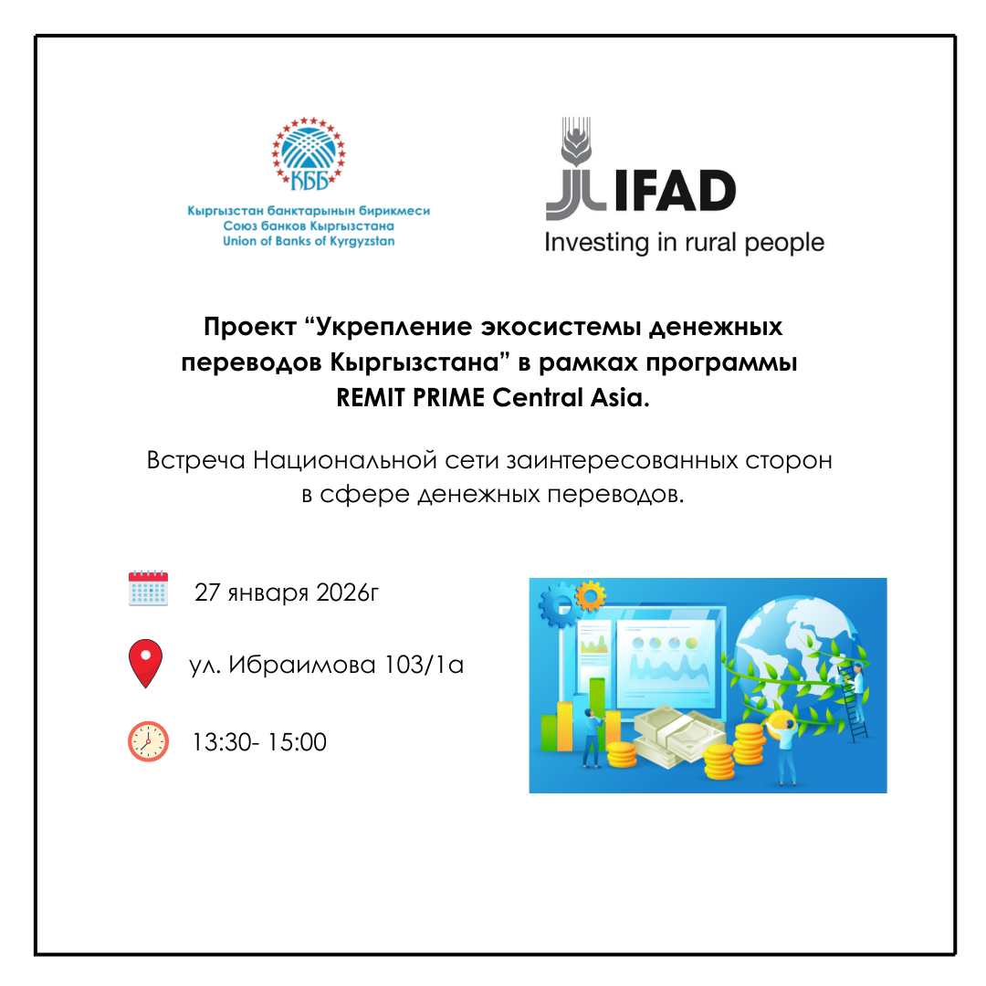 Иш-чара 2026-жылдын 27-январында, саат 13:30да, Кыргызстан банктарынын бирикмесинин кеңсесинде өтөт
