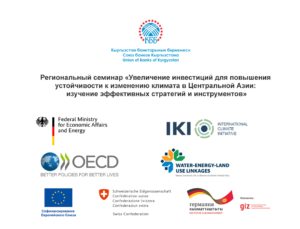 Союз банков Кыргызстана совместно с Организацией экономического сотрудничества и развития (ОЭСР) и Германским обществом по международному сотрудничеству (GIZ) приглашает представителей банков и крупных микрофинансовых организаций на региональный семинар: «Увеличение масштаба инвестиций в устойчивость к изменению климата в Центральной Азии: изучение эффективных стратегий и инструментов». Семинар состоится 22–24 октября 2025 года в г. Бишкеке.